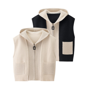 00HM-2959连帽拉链针织马甲2025秋季新款小香风无袖坎肩短外套
