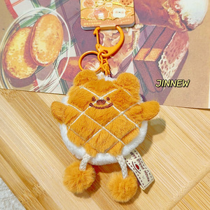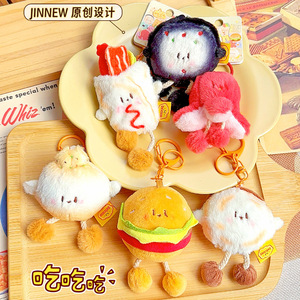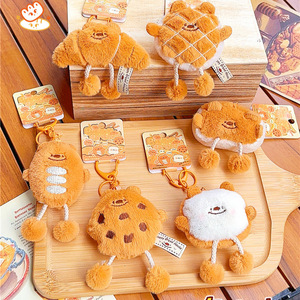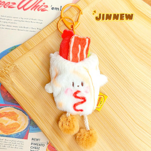 跨境新款mini小吃抽拉脚毛绒挂件可爱肉夹馍土司钥匙扣汽车小挂饰