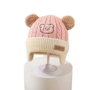 冬季保暖针织麻花童护耳帽宝宝帽子小熊帽韩版可爱婴幼儿毛线帽秋
