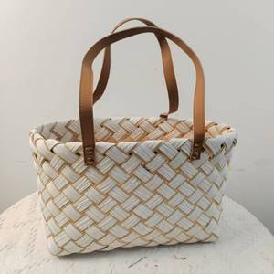 手工木片编织品户外野餐篮收纳礼品包装盒零食水果提包厂家批发