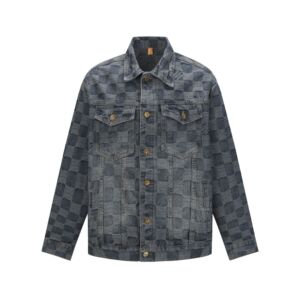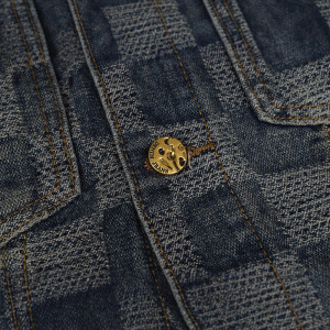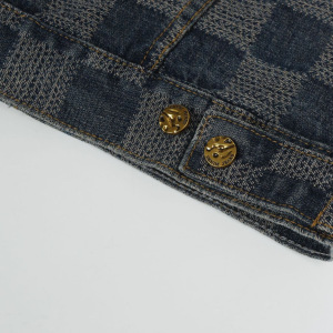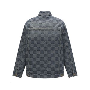 纵驰衣社潮牌牛仔高街复古设计个性水洗格子提花牛仔夹克男士外套