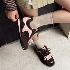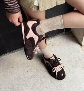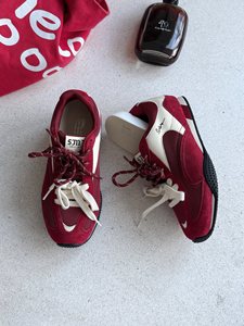 SML真皮女鞋2025秋季新款双鞋带拼色德训鞋百搭阿甘鞋运动休闲鞋
