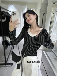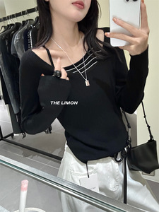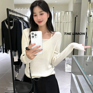 thelimon柠檬绿茶2025秋季新款设计感假两件针织衫女显瘦打底上衣