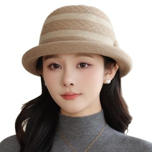时尚英伦花朵礼帽女中老年秋冬针织保暖帽法式卷边盆帽老奶渔夫帽