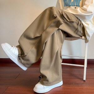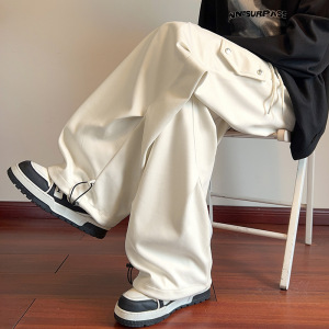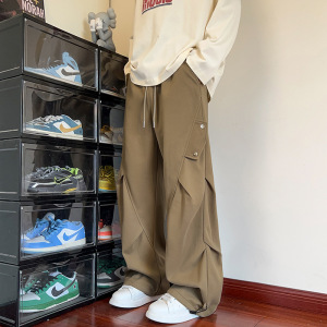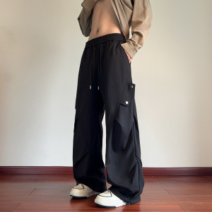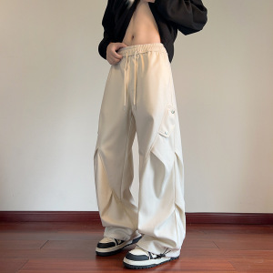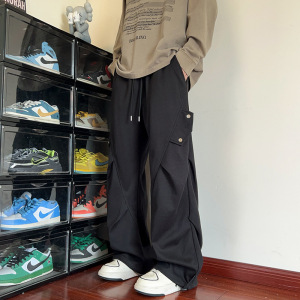 美式星空呢450g重磅褶皱毛呢拼接宽松工装裤男K5960-特P35控68
