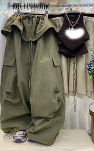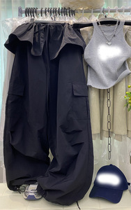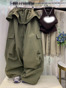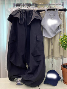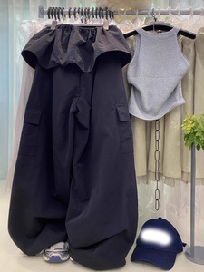 韩版慵懒风设计感荷叶边屁帘+阔腿休闲工装裤抽绳宽松长裤套装女