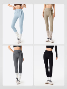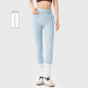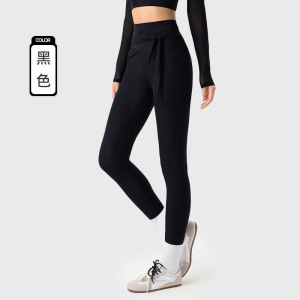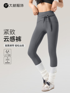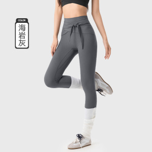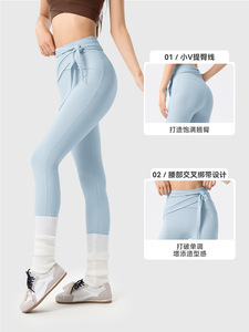 云感高腰瑜伽裤女交叉绑带收腹提臀健身裤罗纹高弹外穿运动紧身裤