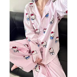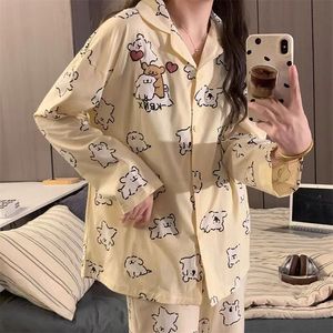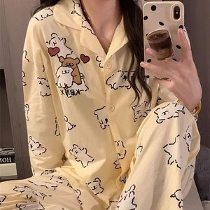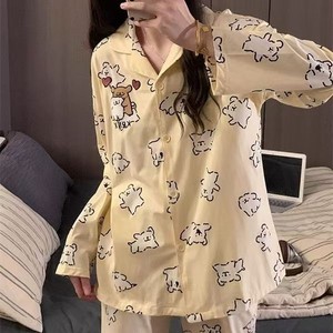 超萌卡通线条小狗睡衣女春秋季长袖长裤日系卡通学生家居服套装