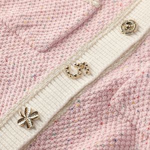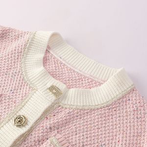 小香风圆领长袖杏粉色针织衫女2025秋季新款气质减龄清新甜美上衣