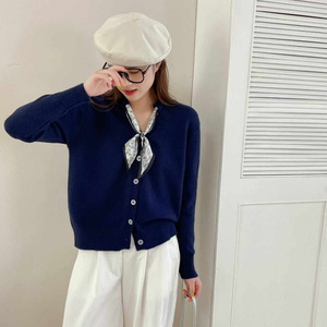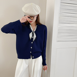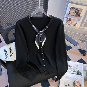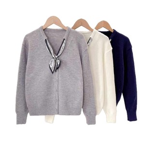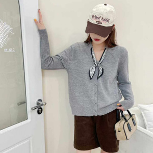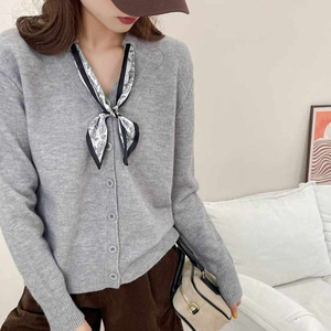 2025秋季新款韩版丝巾翻领针织衫女百搭宽松显瘦polo领毛衣外套