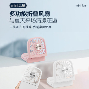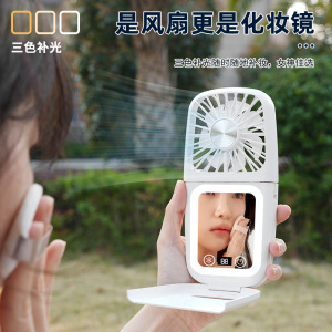 跨境桌面小风扇超静音超长续航挂脖化妆镜折叠支架多功能风扇批发
