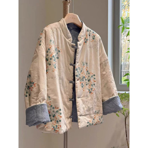 新中式复古双面穿苎麻棉衣立领改良唐装年轻款棉服外套夹棉棉麻冬