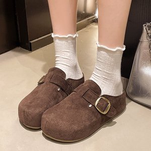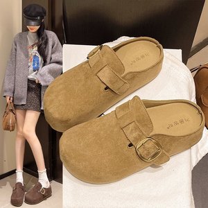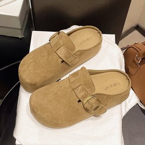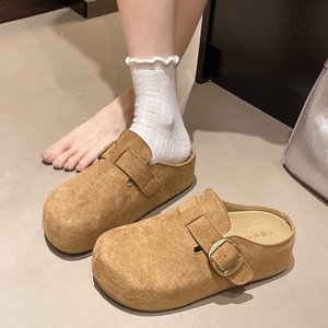 5CM厚底勃肯拖鞋2025秋冬新款外穿复古小个子休闲一脚蹬女拖鞋
