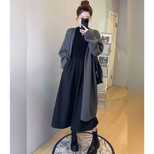 松弛感穿搭套装女秋冬港味气质显瘦打底连衣裙慵懒风洋气毛衣外套