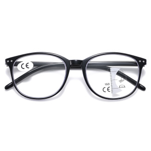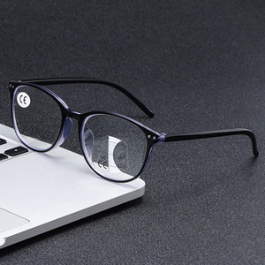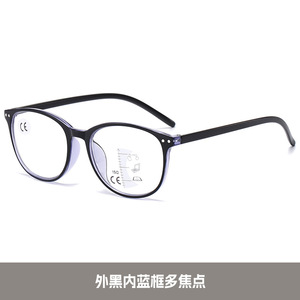 跨境新款渐进多焦点防蓝光老花镜中老年时尚圆框远近两用老花眼镜