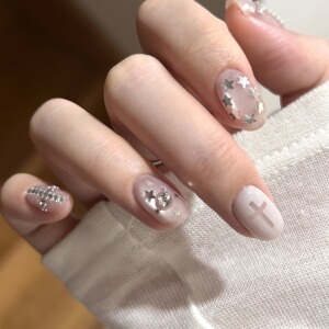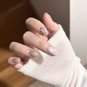 ins风玻璃珠猫眼短款纯手工穿戴甲温柔显白手作美甲甲片假指甲