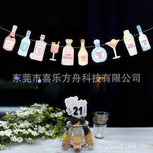 21岁酒瓶横幅装饰生日派对拉旗 主题派对庆生横幅 派对装饰用品