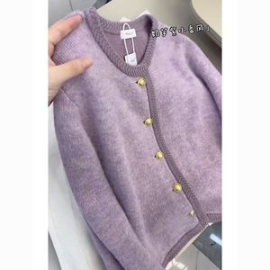 小香风时尚百搭圆领长袖针织衫外套软糯单排扣气质淑女风毛衣