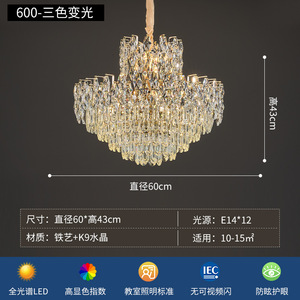 【精选K9水晶】圆60cm-LED三色变光