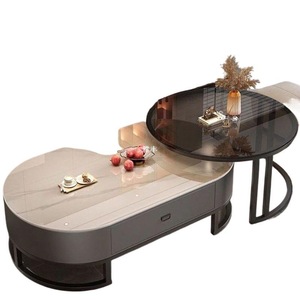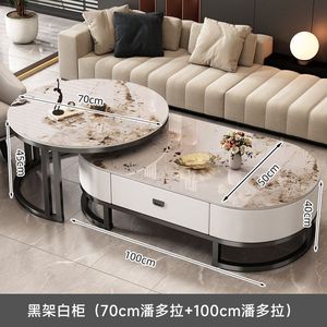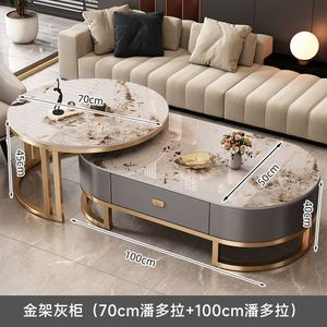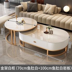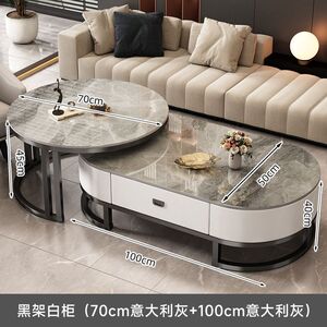 意式轻奢椭圆形玻璃茶几客厅家用茶水桌网红高级感大理石茶几组合