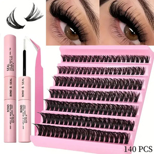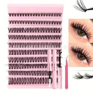 跨境分段热熔朵毛大容量DIY分段式单簇浓密卷翘黑梗自嫁接眼睫毛