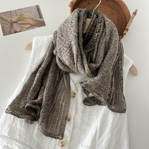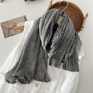 韩国小众蕾丝拼接文艺范纯色针织棉麻围巾女披肩复古保暖旅游纱巾