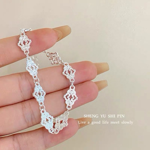 银佳银饰 足银999 镂空花丝如意手链 潮流 精品现货一件代发