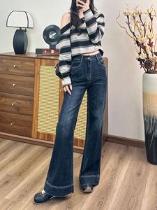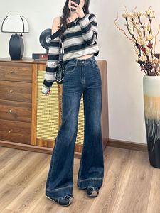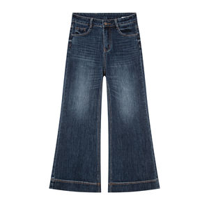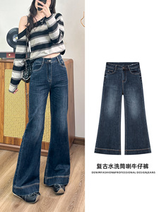佳伟复古水洗筒喇牛仔裤女蓝灰色喇叭形牛仔裤批发微弹25年初秋款