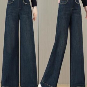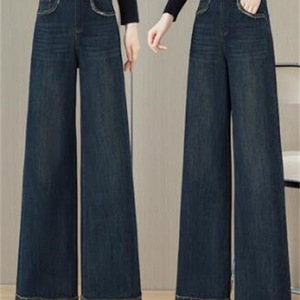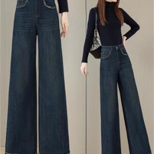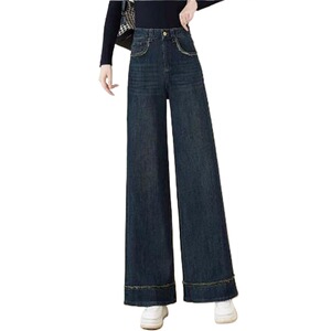 复古蓝色阔腿牛仔裤女2025春季新款高腰宽松显瘦时尚休闲直筒长裤
