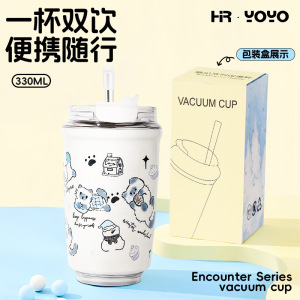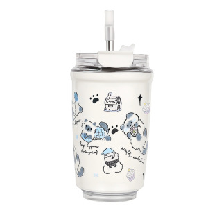 原创高颜值雪人可爱猫咪手绘网红大容量316不锈钢吸管保冷保温杯