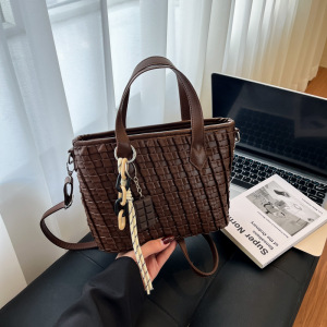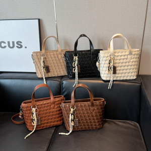 2025早秋新款手提水桶包包女时尚编织通勤女包经典百搭单肩斜挎包