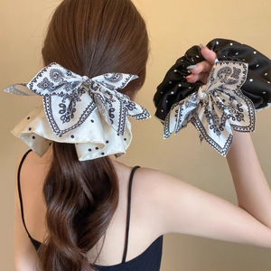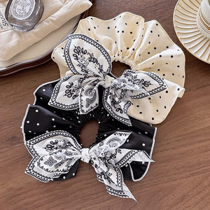 新中式复古腰果花蝴蝶结大肠发圈女高级感丸子头超大号头绳发饰