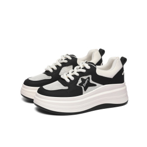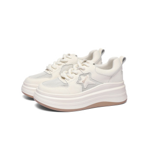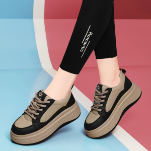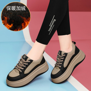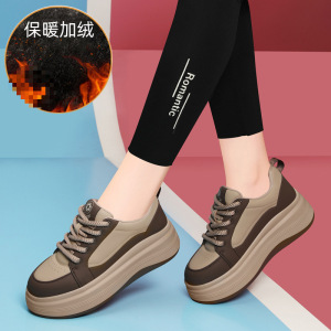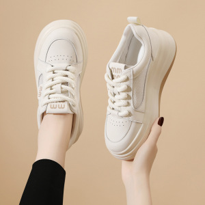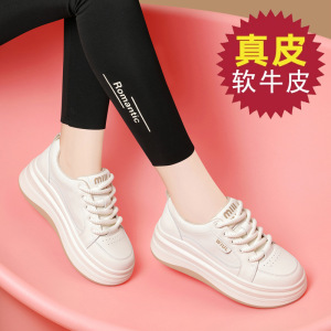 厂家直销真皮小白鞋女款休闲百搭老爹鞋2025秋平底厚底女士运动鞋