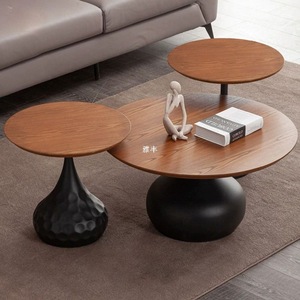 奶油北欧风实木茶几客厅家用ins风全套简约现代网红爆款圆形茶几