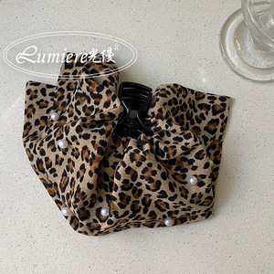 轻奢高级珍珠豹纹裙摆抓夹ins时尚老钱风手工钉珠马尾鲨鱼夹新款