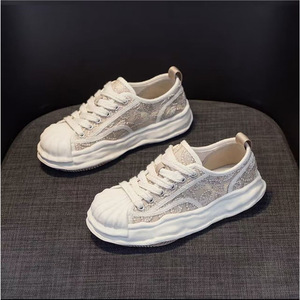 厂家直销溶解鞋女2025春秋新款真皮小白鞋复古厚底休闲板鞋韩版