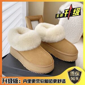 内增高雪地靴女厚底韩版2025新款防水加绒加厚冬季一脚蹬毛毛棉鞋