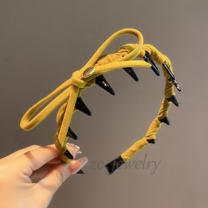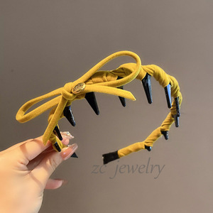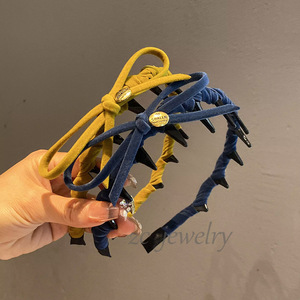 韩版东大门新款丝绒细款带齿蝴蝶结发箍女时尚轻奢高颅顶外出发卡