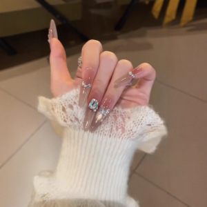 满钻猫眼爆闪纯手工穿戴甲腮红显白富家千金显白美甲贴片
