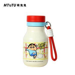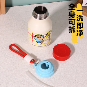 新款蜡笔小新Q弹便携保温杯316不锈钢可爱卡通高颜值带提绳保温杯