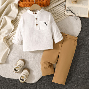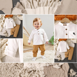跨境专供—男婴春秋款套装 刺绣小马polo衫长袖上衣+精致纯色长裤