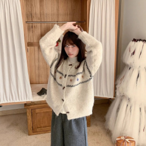 艾!D200刺绣花朵羊绒毛衣开衫长60-仅供货经销商不退换
