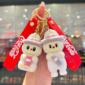 亚马逊LABUBU钥匙扣挂绳情侣配饰挂件 汽车钥匙链植绒拉布布挂饰