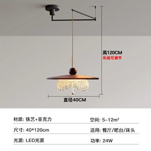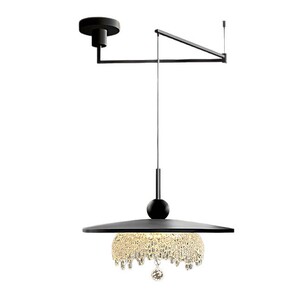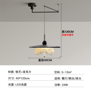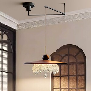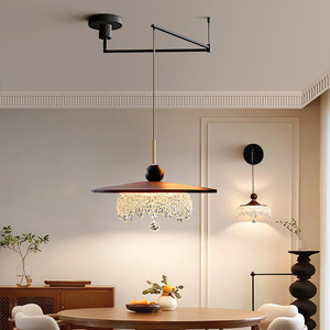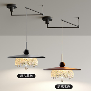 中古创意餐厅小吊灯冰山水滴全光谱复古胡桃木色折叠摇臂可移吊灯