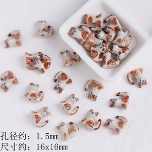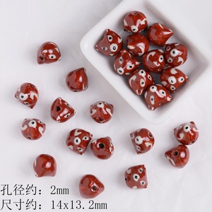咖色系高温手绘动物珠陶瓷珠子串珠散珠 diy手工手链制作材料陶珠