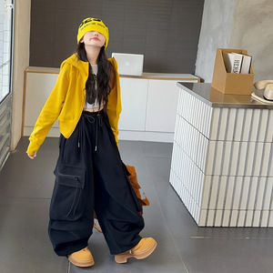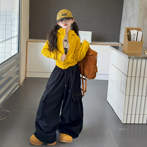 女童秋装套装2025童装新款小女孩时髦针织工装裤大童黄色卫衣洋气
