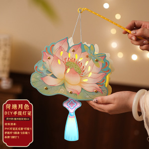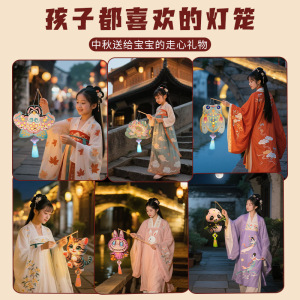 中秋节灯笼2025新款发光卡通宫灯儿童手提花灯diy手工制作材料包