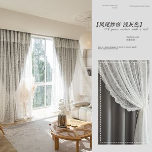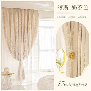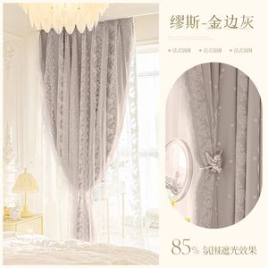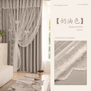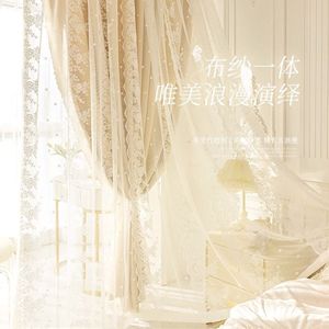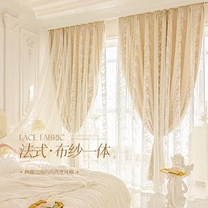 卧室布纱一体窗帘双层带纱遮光2025新款客厅感法式蕾丝公主风工厂