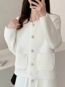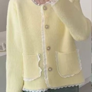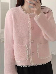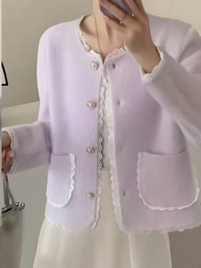 小香风2025秋冬新款法式名媛蕾丝边针织短外套女气质小众百搭上衣