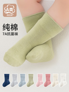 7A抗菌无骨婴儿袜子纯棉新生儿a类棉袜松口纯色烫标儿童袜子诸暨